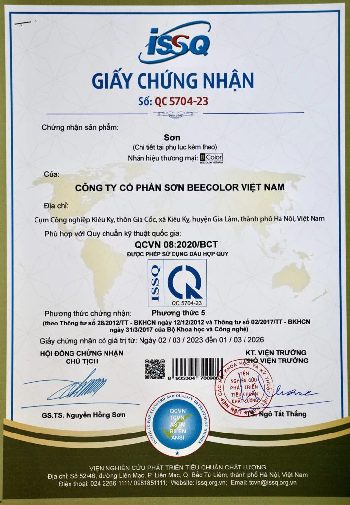 Bcolor luôn hướng tới sử dụng những nguồn nguyên vật liệu đạt chuẩn kết hợp với công nghệ sản xuất mới nhất để tạo nên những sản phẩm sơn xanh, sạch, nhẹ mùi. Công nghệ xanh không chứa các loại hoá chất gây hại cho sức khoẻ như: Apeo, Phoóc môn, Kim loại nặng, hợp chất hữu cơ bay hơi (VOCs) rất thấp.