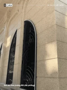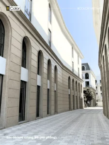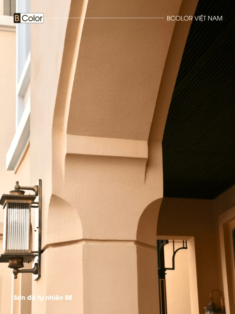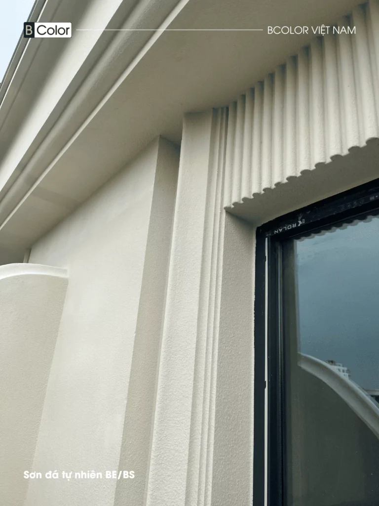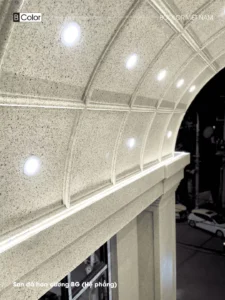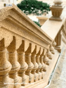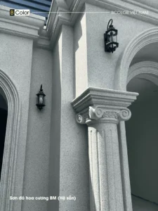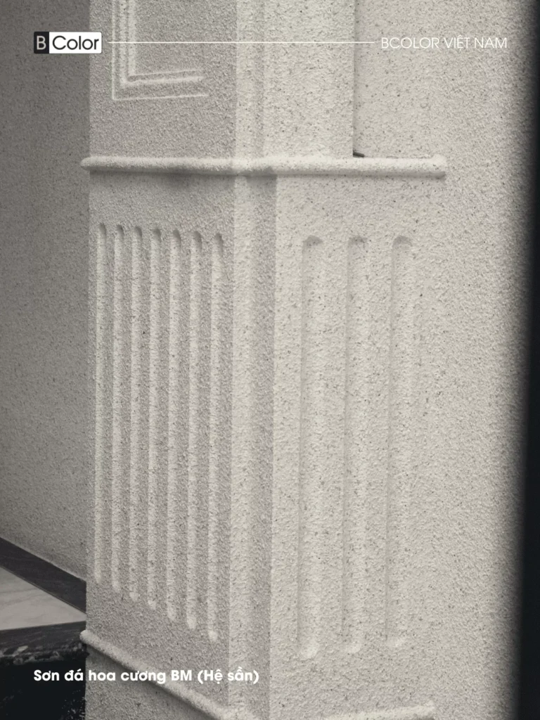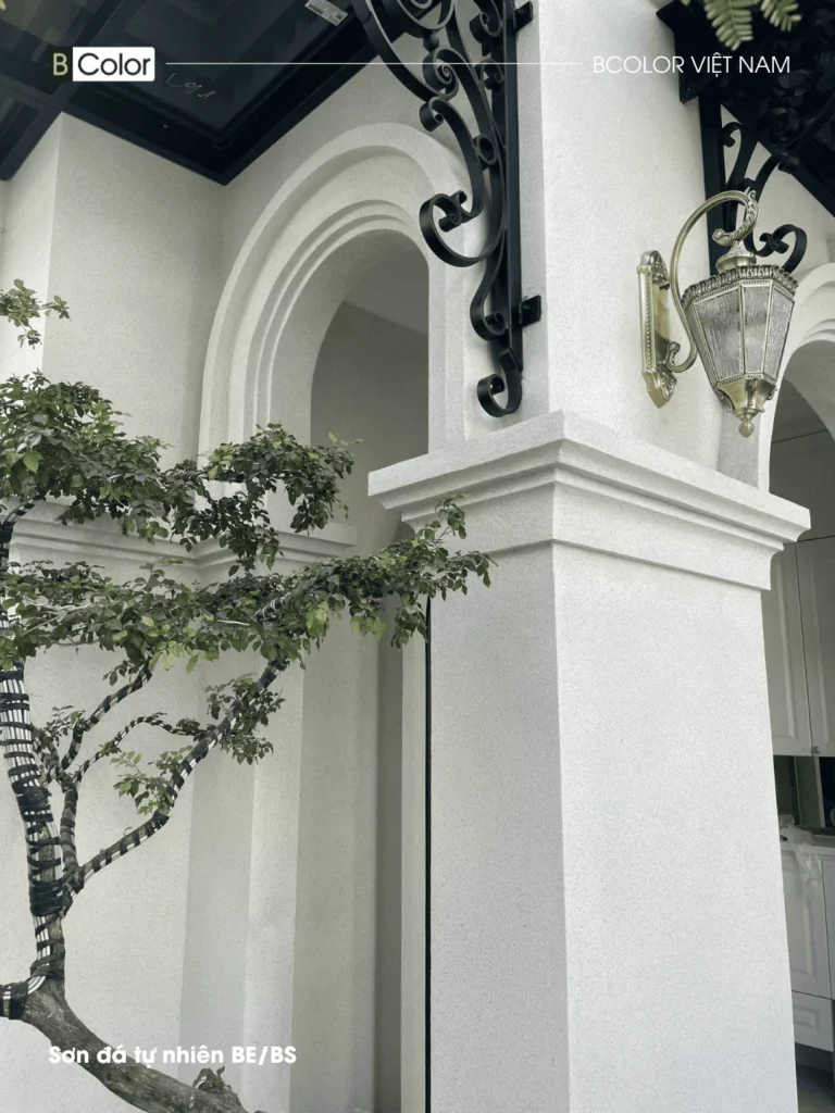 Sơn đá hạt dẹt: Phù hợp trang trí điểm nhấn cột,cổng, toàn cảnh ngoại thất, kiến trúc tân cổ điển, mang tới vẻ đẹp chắc chắn